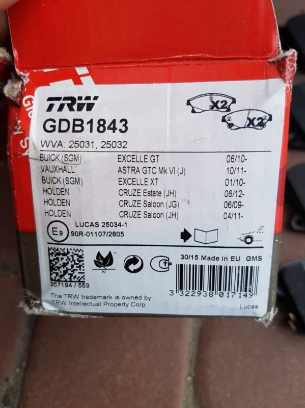 Klocki hamulcowe Opel Astra J Aveo Cruze TRW 1843